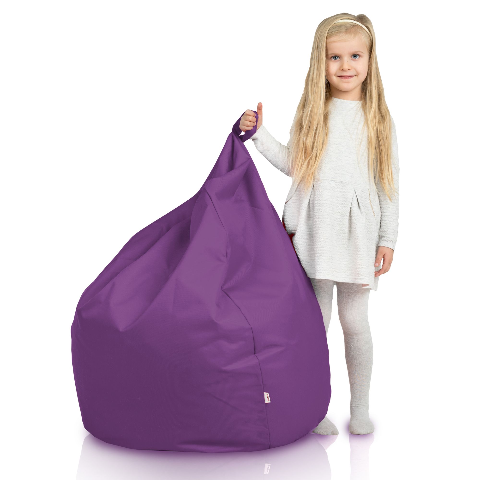 Le siège peut également être utilisé comme sac pour le jardin grâce à son matériau durable, qui peut être facilement nettoyé sans craindre la perte de couleur. Ce modèle se fondra joliment parmi la végétation grâce à sa teinte violette. Le sac poire pour les enfants ou pour le jardin se caractérise également par sa mobilité grâce à sa poignée.